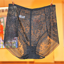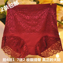 2条包邮正品外贸加肥大码内裤女胖M高腰蕾丝网纱透明收腹性感无痕