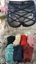 大码内裤女胖m性感全透明透视蕾丝镂空交叉带露P中腰女三角裤头