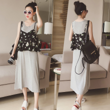 孕妇装夏季孕妇连衣裙纯棉宽松上衣潮妈中长款孕妇裙吊带裙两件套