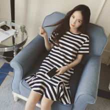 条纹印花孕妇连衣裙 夏装孕妇装春秋装上衣中长款 短袖孕妇裙子