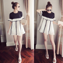 荷叶拼接韩国时尚新款孕妇装夏季上衣 高腰宽松孕妇连衣裙 潮妈款