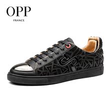 夏季新款OPP男鞋 男士时尚休闲板鞋英伦牛皮压花真皮低帮鞋 潮鞋