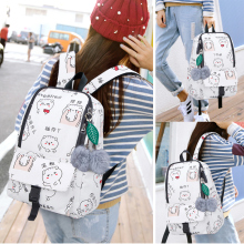 百搭双肩包女印花日韩版潮流学院高中学生书包初中生旅行背包帆布