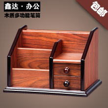 包邮鑫达多款笔筒5019木质带抽屉多功能收纳盒 办公组合笔座