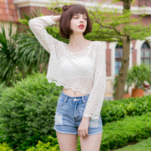 linjou玲玖2017新款镂空钩花蕾丝薄空调防晒上衣套头沙滩宽松罩衫