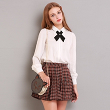 linjou玲玖2017才春装娃娃领女士白色雪纺长袖衬衫学院风衬衣女