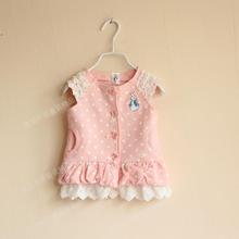 2017春秋新款小兔彼得圆点纯棉蕾丝开衫马甲女童背心宝宝外套童装