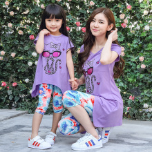 母女装2017新款夏亲子装春装韩版宽松加大码中长款母女裙套装童装