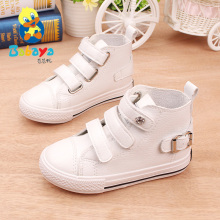 芭芭鸭2017秋季新款高帮男童儿童皮鞋学生休闲鞋女童运动小白鞋潮