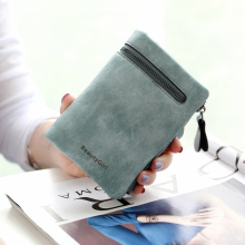 邻家小妃2017新款钱包女短款 简约磨砂两折拉链女生小钱包零钱包