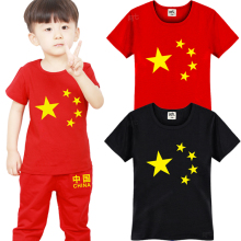 阿七男童国庆纯棉班服爱国女童短袖T恤五星亲子装儿童装中国队服