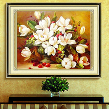 新款印花十字绣小幅简单卧室油画栀子花开客厅十字绣画欧式满绣KX