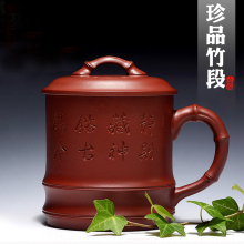 古悦堂 宜兴紫砂杯 全手工正品 茶杯子壶盖杯 珍品竹段 礼盒