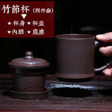 【天天特价】紫砂杯宜兴刻字隔舱内胆过滤手工带盖水杯泡茶办公室