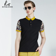 RS男装 夏季潮流新款青年百搭翻领撞色印花五分袖t恤polo衫男