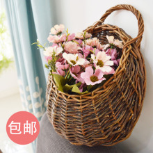 墙面装饰仿真花壁挂柳编花篮家居墙面卧室墙面装饰壁饰墙上挂件
