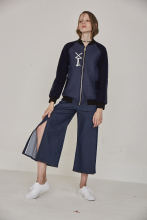 ANNBOO2017秋冬新款 蓝色夹克风衣拼接皮U外套防水