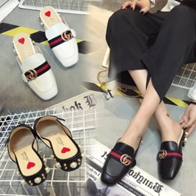 春季单鞋女复古方头珍珠鞋女粗跟小皮鞋女英伦风懒人半拖鞋女包头