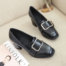 春季方扣英伦小皮鞋女低跟尖头韩版粗跟单鞋皮带扣方扣学院风女鞋