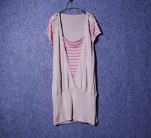 外贸清仓 出口原单大牌假两件套短袖条纹粉色连衣裙真丝针织女裙6