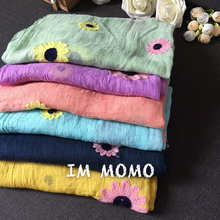 • 春夏新款外贸原单纯色刺绣花清新文艺民族风围巾防晒披肩丝巾日系