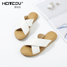 拖鞋女夏2017外穿时尚英伦休闲女鞋交叉带简约复古平跟平底凉拖鞋
