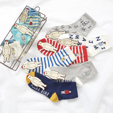 三款可选 韩国女士纯棉袜子 秋天 女款字母可爱小熊刺绣女中筒袜