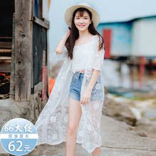 yoyo家 夏季新款海边度假防晒罩衫中长款蕾丝开衫气质中袖披肩潮
