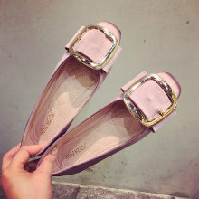 舒适百搭2016秋欧美新品方头平底单鞋韩版女方扣少女平跟浅口女鞋
