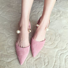 春季单鞋女 韩版绒面珍珠尖头浅口高跟鞋女细跟2017新款女鞋潮6cm