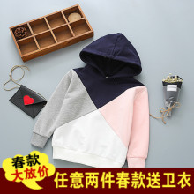 17春款韩版童装拼色纯棉男女童运动卫衣单件上衣中大童套头衫带帽