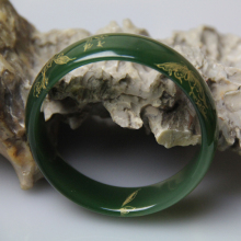 精品 碧玉手镯 新疆和田 精品细腻花纹精美 碧玉鎏金 附带证书