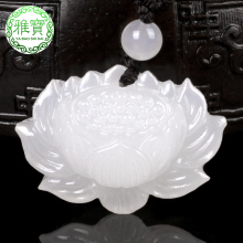 雅宝时代 石英白玉吊坠雪莲花玉坠情侣荷花玉佩玉莲蓬项链男女玉