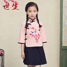 全棉民国儿童装汉服女童夏中国风国学生装公主裙套装古筝演出服装