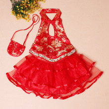 新款大红色喜庆儿童唐装童装舞台装中国风短袖女童旗袍裙宝宝旗袍