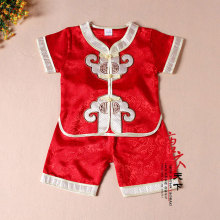 新款绣花儿童唐装短袖夏款唐装男童民族表演服装宝宝丝绸唐装特价