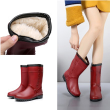 冬季时尚女士雨鞋中筒雨靴加绒棉胶鞋仿皮成人水鞋保暖防滑水套鞋