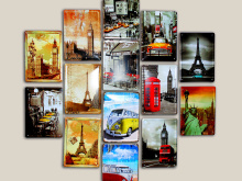 墙饰 客厅装饰画欧美建筑埃菲尔铁塔酒吧咖啡室内装饰复古铁皮画