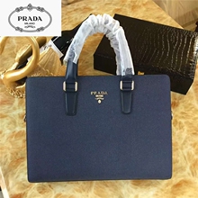 正品代购prada/普拉达男包新款宝蓝色商务手提包真皮单肩包公文包