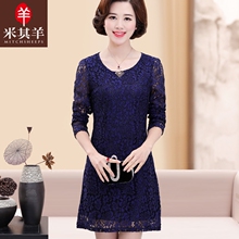 妈妈夏季裙子40-50岁中年人连衣裙春装女新款2017长袖打底蕾丝裙