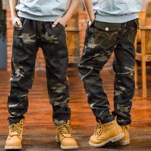 全棉大童裤子男童迷彩休闲裤宽松款儿童春秋长裤男生春装春季童装