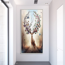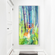 北欧玄关装饰画竖版现代简约过道走廊挂画小清新餐厅麋鹿壁画墙画