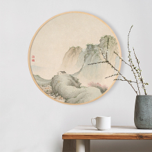 实木圆形 装饰画新中式山水画客厅书房卧室挂画玄关过道壁画国画