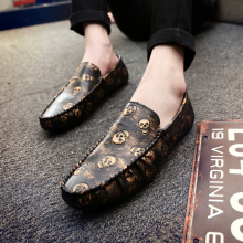 春季时尚潮鞋百搭豆豆鞋真皮鞋英伦风男鞋子简约豹纹学生休闲鞋子