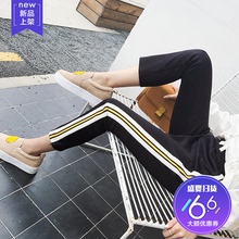 2017夏条纹运动裤薄款九分休闲束脚萝卜小脚港味复古黑哈伦女裤子