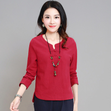 春韩版女装民族风纯色长袖衬衫衬衣棉麻T恤小外套打底衫上衣YF-35