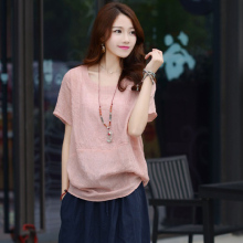 夏大码女装文艺宽松棉麻短袖T恤衬衫上衣服亚麻半袖小衫薄款XY-06
