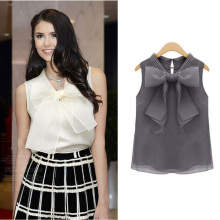 2017春装新款韩版长袖白衬衫真丝欧根纱衬衣修身大蝴蝶结雪纺衫潮