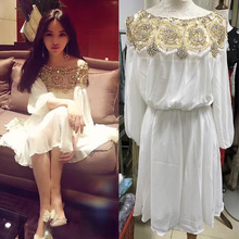 2017春夏新款 奢华重工华丽丽海滩裙高端钉珠女神浪漫连衣裙女