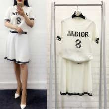 2017年夏季新款8号字母刺绣冰丝镂空针织休闲短袖T恤+半裙套装